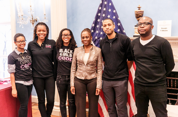 Yesterday, I had the honor of participating in a wonderful event alongside Black Girls Code. I was tasked with teaching a group of girls how to develop Android applications. Held at Gracie Mansion, the event was graced by the presence of Chairlane McCray, the wife of Mayor Bill de Blasio (pictured at the center of the image). These girls, who come from homeless backgrounds and reside in group homes across the city, showed immense enthusiasm for learning about what they are capable of creating with technology, which was truly wonderful to see.